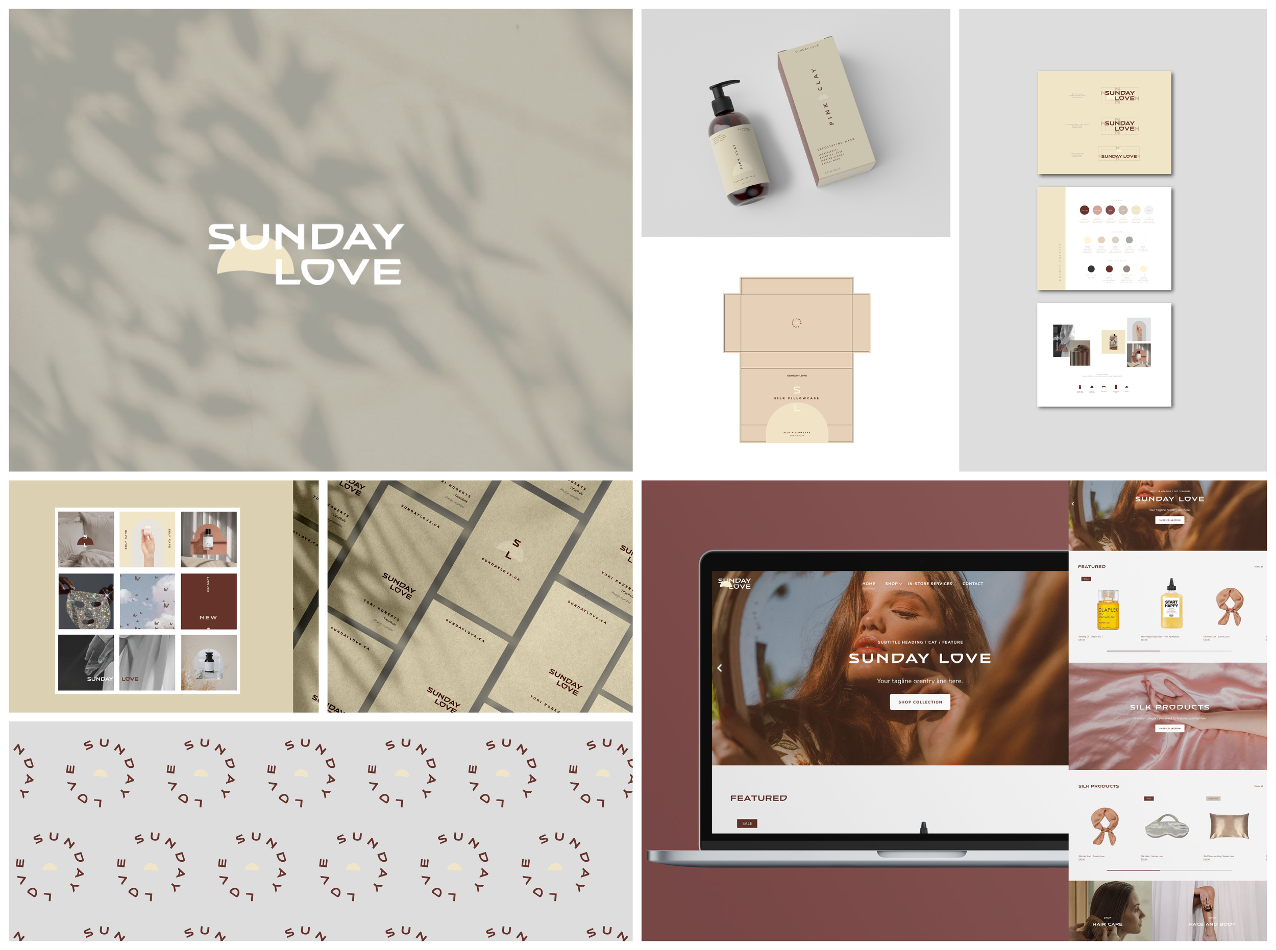 The owner and creator of Sunday Love was a previous client who came to me for a brand identity for their new beauty and lifestyle business. Seeking a contemporary, moody but also cozy identity, we developed a unique and trendy logo mark to reflect the calmness of self-care. A full package was created including brand identity (logo, palette, photography library, business cards, pattern), packaging, and e-commerce website (utilizing SquareSpace) for client accessibility.